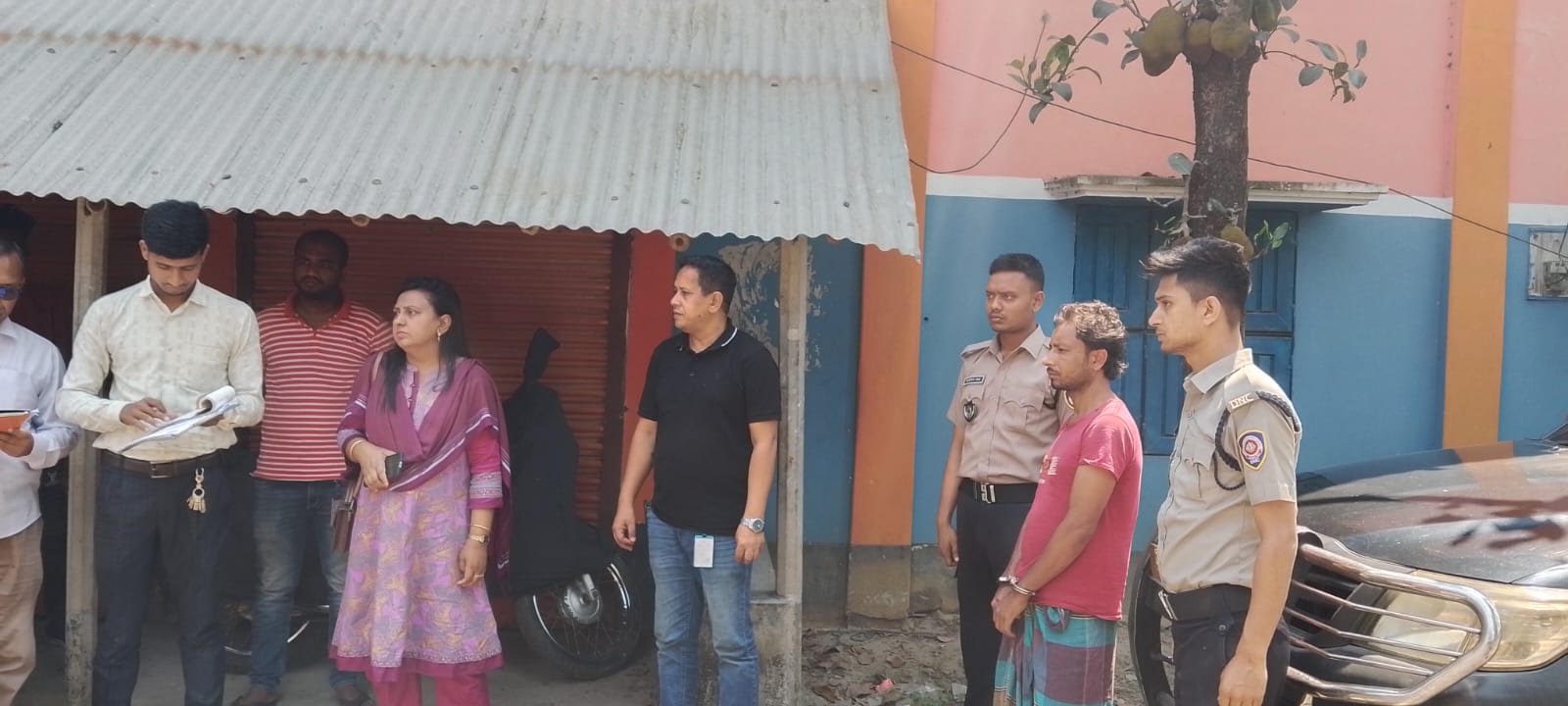 এ সময় উপজেলা সহকারী কমিশনার (ভূমি) ইশরাত জাহান, পৌর নির্বাহী কর্মকর্তা লুৎফর রহমান, পুলিশ ও আনসার সদস্য উপস্থিত ছিলেন।