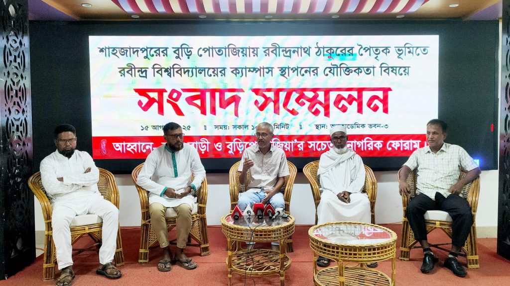 একই স্থানে সাড়ে ১১টায় বহল বাড়ি ও বুড়ি পোতাজিয়া গ্রামবাসীর পক্ষে সচেতন নাগরিক ফোরাম আয়োজিত সংবাদ সম্মেলেন লিখিত বক্তব্যে ডা. আব্দুল হান্নান বলেন, বুড়ি পোতাজিয়ায় রবীন্দ্র বিশ্ববিদ্যালয় প্রস্তাবিত ক্যাম্পাস প্রকল্প এলাকা দিয়ে চলনবিলের পানি প্রবাহিত হয় না। চলনবিলের পানি অন্য দিক দিয়ে যায়। তাহলে চলনবিলের ক্ষতি হবে কি করে? যারা বালুর ব্যবসা, গোচারণ ভূমি ইজারার নামে লুটপাটের সাথে জড়িততারাই বিশ্ববিদ্যালয় প্রতিষ্ঠায় বাঁধা দিচ্ছে।