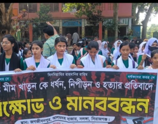 সলঙ্গায় মীম হত্যাকারীর ফাঁসির দাবিতে মানববন্ধন
