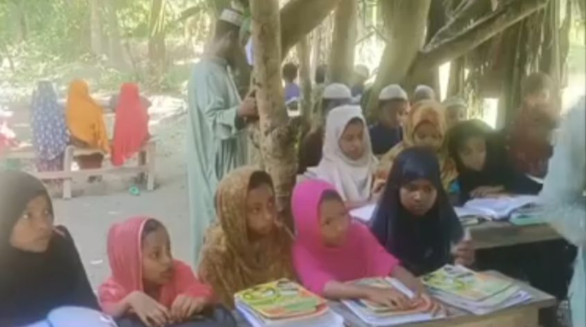 মেঘনার ভাঙনে বিলীন ইসলামপুর মাদ্রাসা, খোলা আকাশের নিচে চলছে পাঠদান