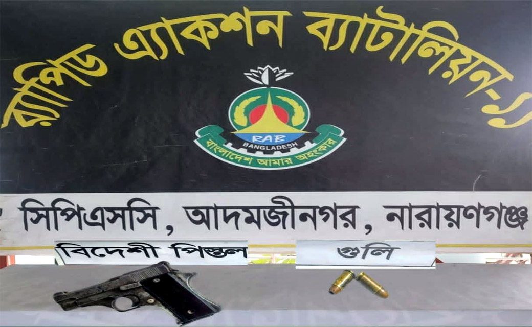 গজারিয়ায় র্যাবের অভিযানে পিস্তল-গুলি উদ্ধার