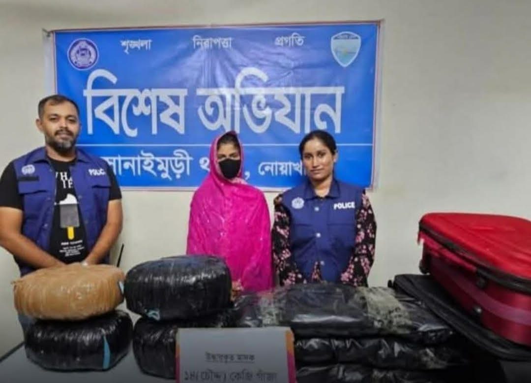 নোয়াখালীতে ১৪ কেজি গাঁজাসহ নারী আটক