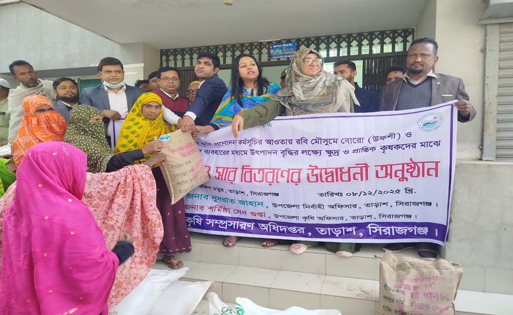 তাড়াশে ক্ষুদ্র ও প্রান্তিক কৃষকদের মাঝে বিনামূল্যে বীজ ও সার বিতরণ কার্যক্রমের উদ্বোধন