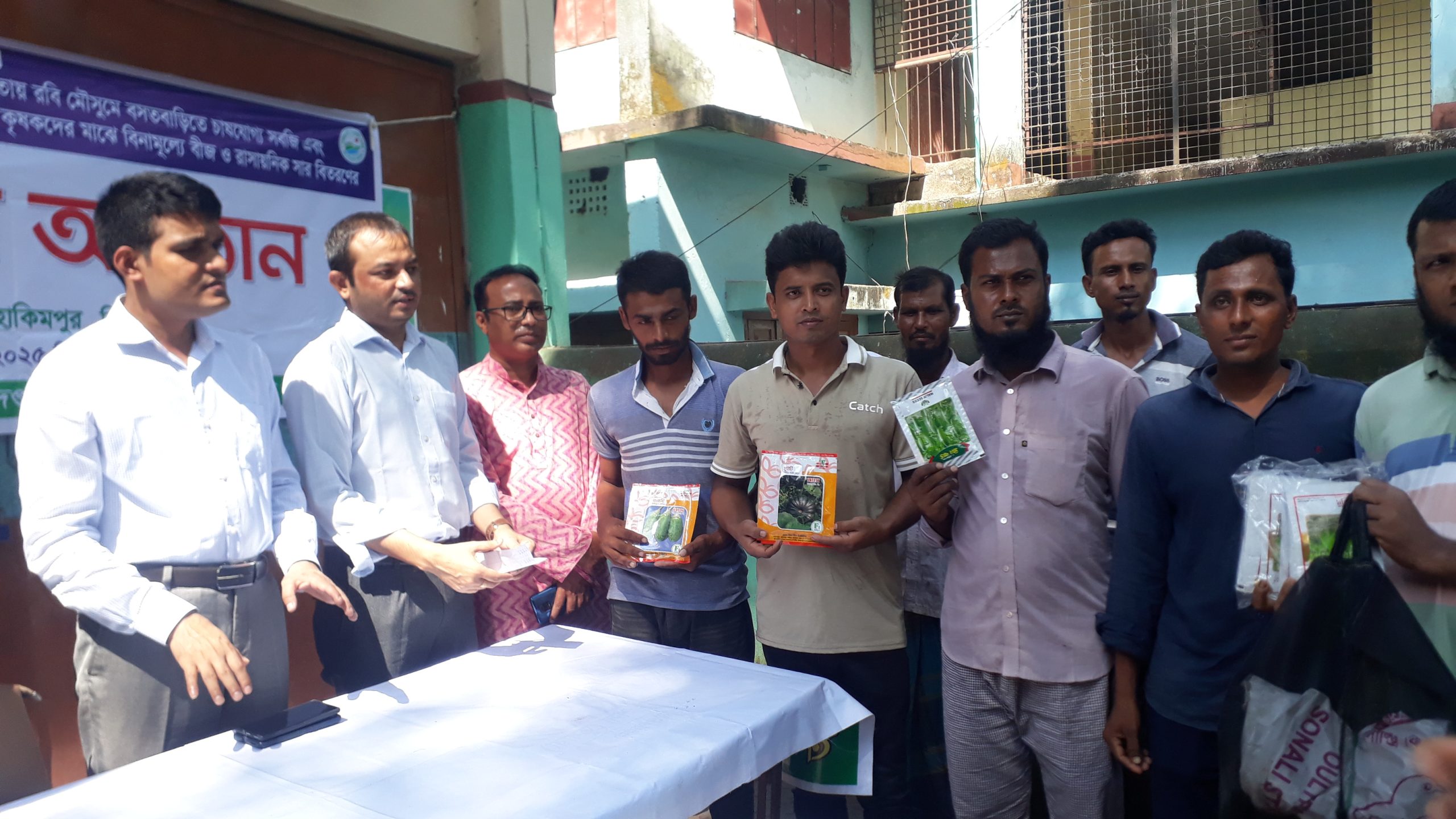 হিলিতে কৃষকদের মাঝে সবজি বীজ ও সার বিতরণ