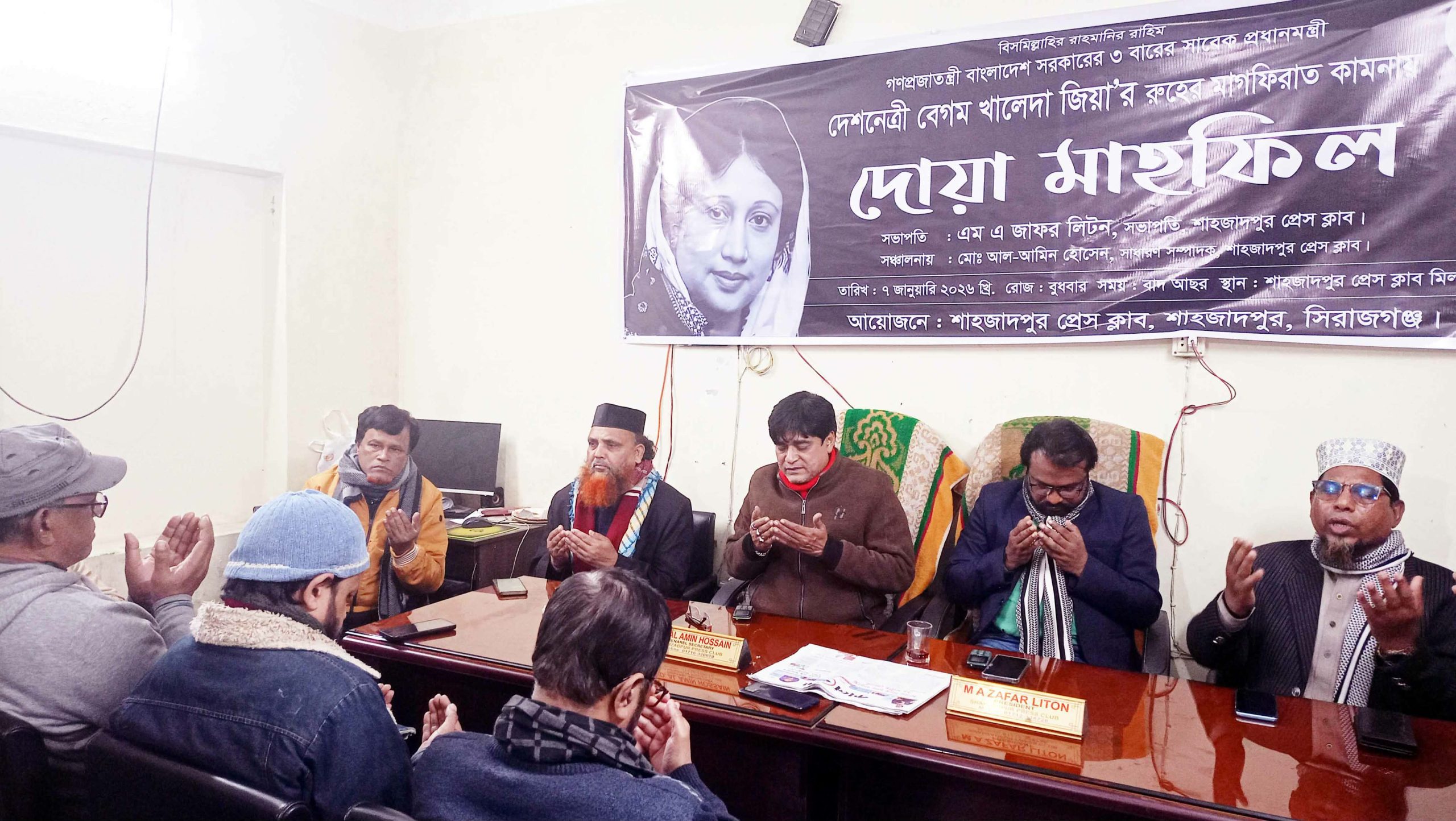 শাহজাদপুর প্রেসক্লাবে খালেদা জিয়ার রুহের মাগফিরাত কামনায় দোয়া