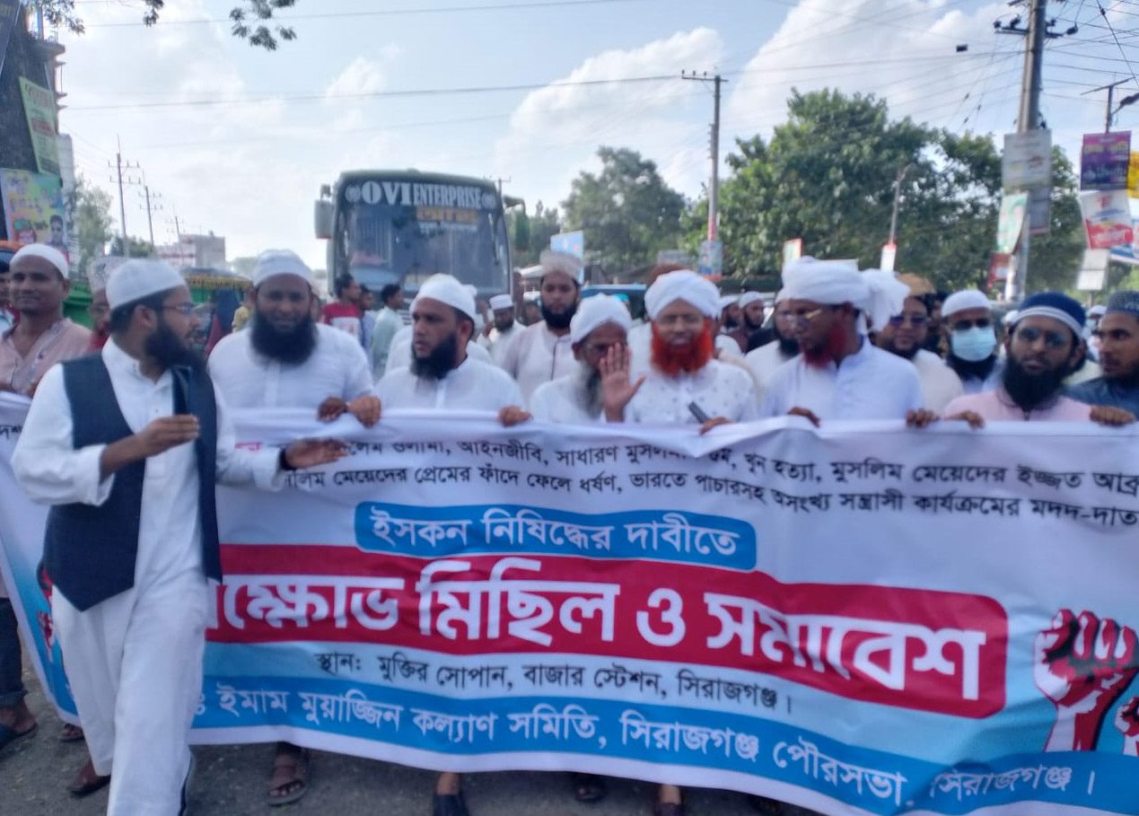 ইসকন নিষিদ্ধের দাবীতে সিরাজগঞ্জে বিক্ষোভ