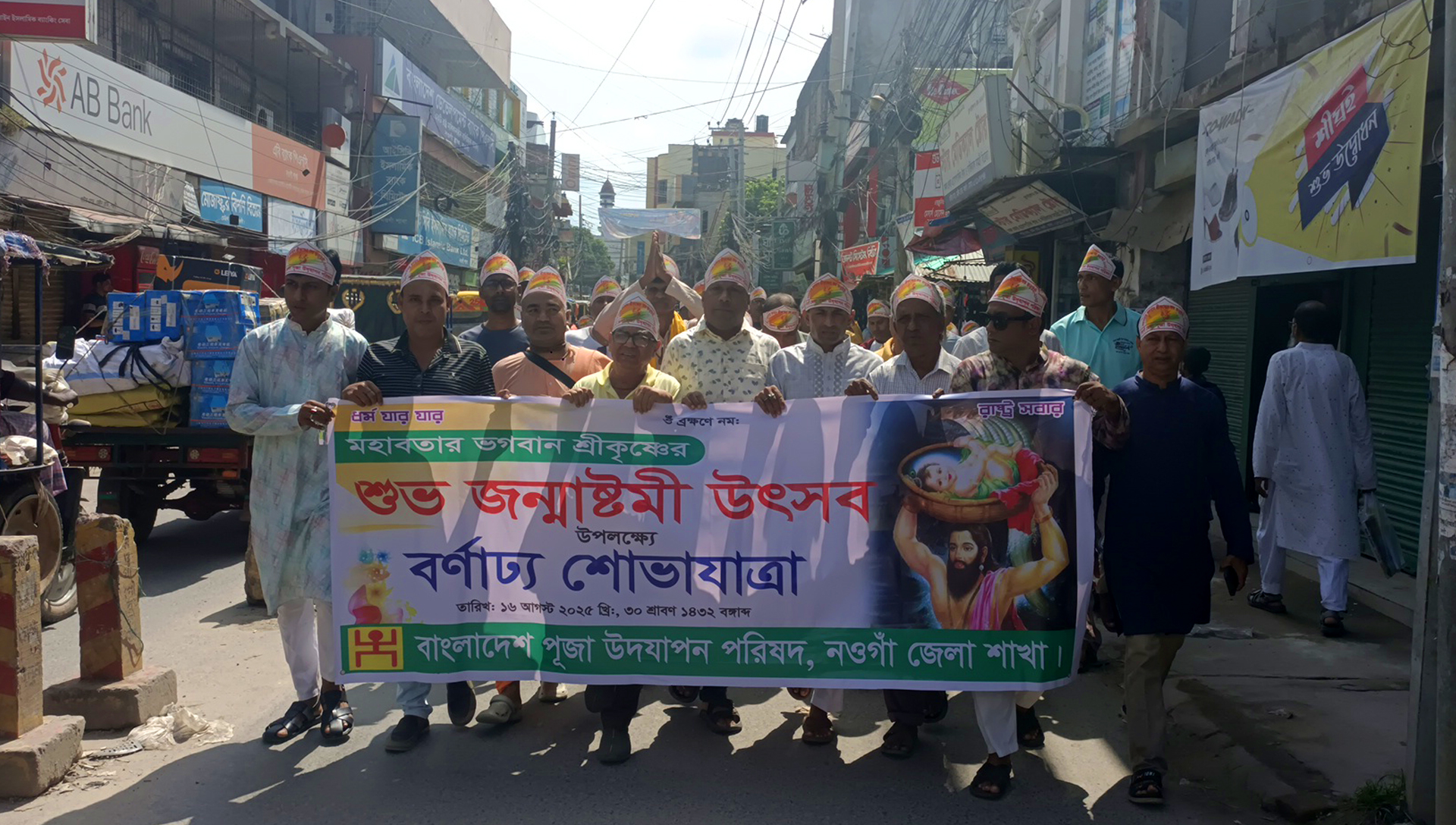 নওগাঁয় শ্রী শ্রী কৃষ্ণের জন্মাষ্টমী উৎসবে শোভাযাত্রা