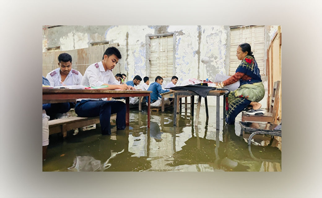 বৃষ্টির পানিতে পরীক্ষা কেন্দ্রে জলাবদ্ধতা,ভোগান্তিতে এসএসসি শিক্ষার্থীরা