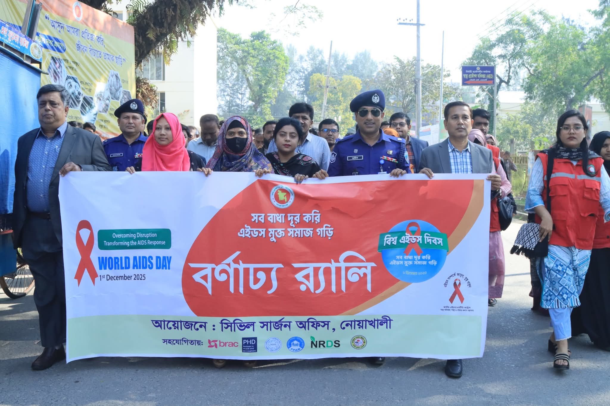 বিশ্ব এইডস দিবস ২০২৫ উপলক্ষে নোয়াখালীতে বর্ণাঢ্য র্যালি