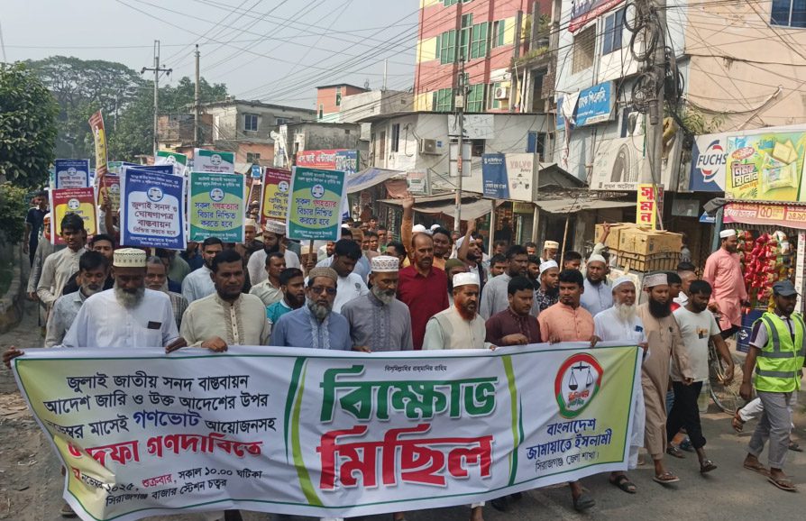 জুলাই জাতীয় সনদ বাস্তবায়ন আদেশ জারি ও নভেম্বর মাসেই গণভোটের আয়োজনসহ ৫ দফা দাবীতে সিরাজগঞ্জে বিক্ষোভ মিছিল এবং সমাবেশে করেছে