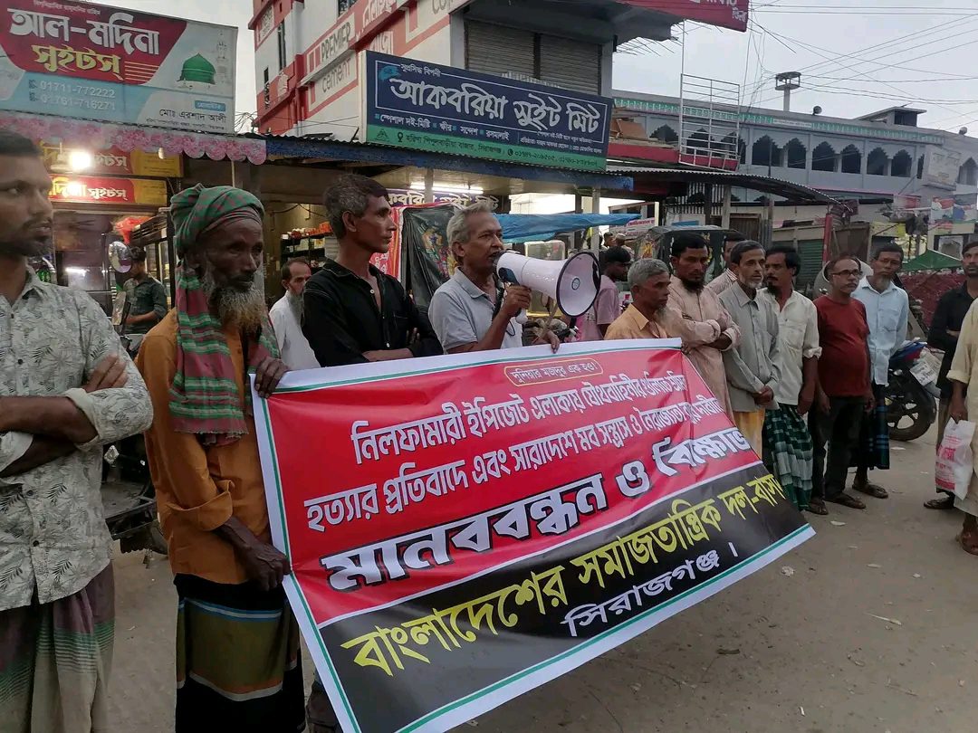 জনতার কণ্ঠ প্রতিবেদক: নীলফামারী ইপিজেড এলাকায় যৌথ বাহিনীর গুলিতে শ্রমিক হত্যার প্রতিবাদে সিরাজগঞ্জে মানববন্ধন ও বিক্ষোভ কর্মসূচি পালন করেছে বাংলাদেশের