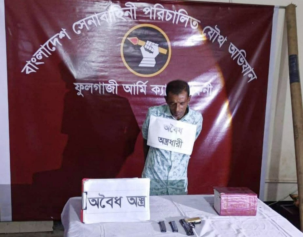 ছাগলনাইয়ায় যৌথবাহিনীর অভিযানে বিদেশী পিস্তলসহ গ্রেপ্তার ১