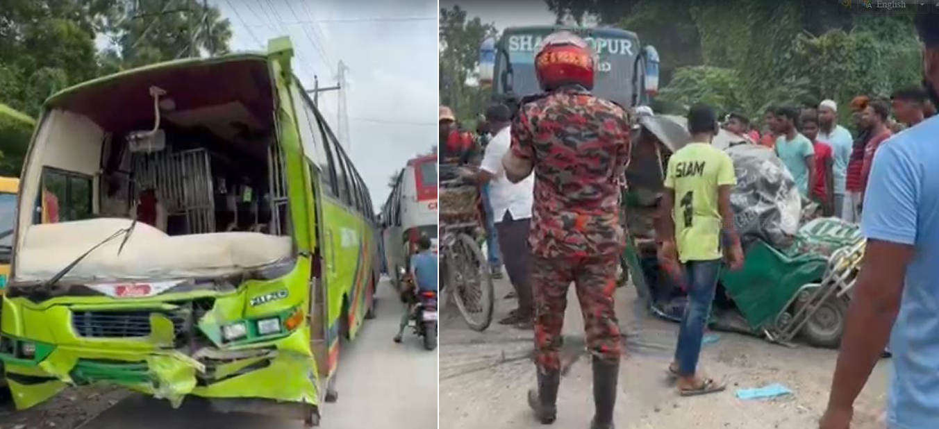 দাঁড়ানো অটোরিকশা ও ভ্যানকে চাপা দিলো বাস, প্রাণ গেল চালকের