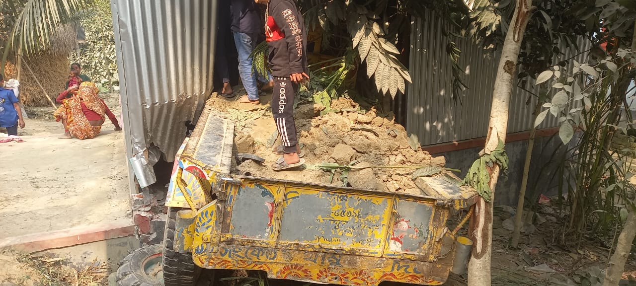 নিয়ন্ত্রণ হারিয়ে টেইলার্সের দোকানে ঢুকে পড়লো মাটি ভর্তি টলি, চালকসহ আহত ৪