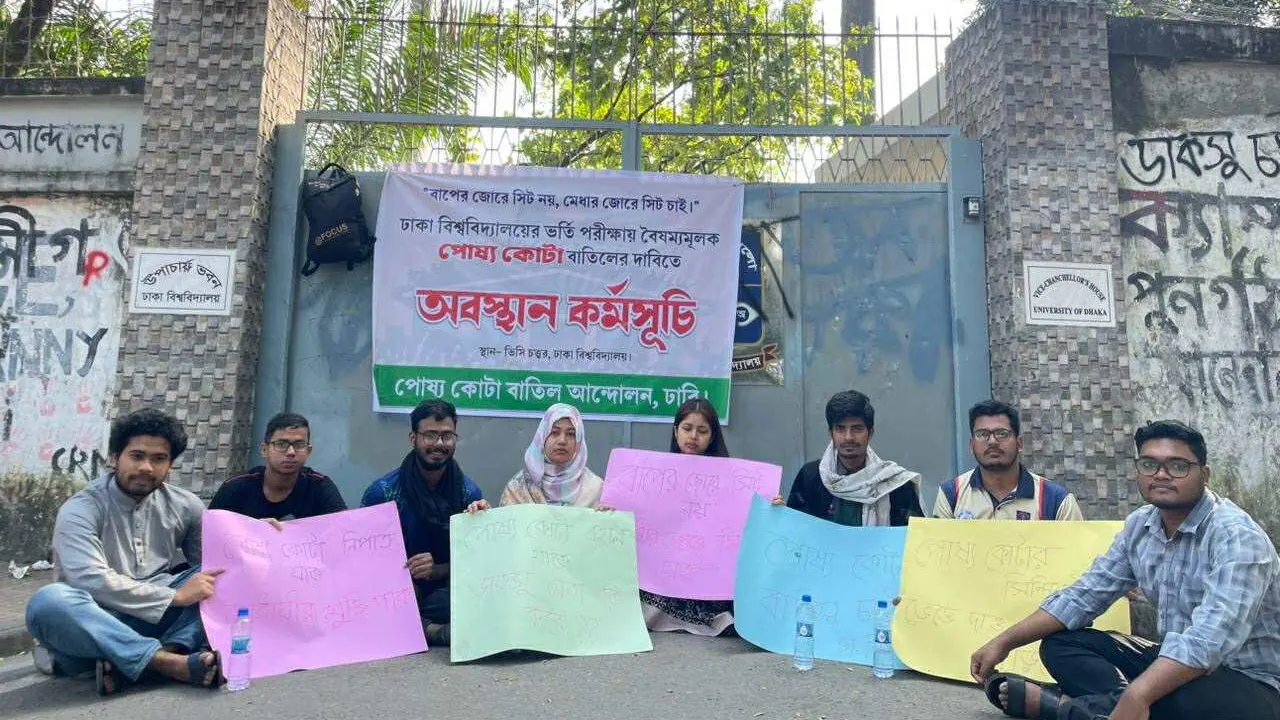 ঢাবির ভর্তি পরীক্ষায় পোষ্য কোটা বাতিলের দাবিতে অবস্থান কর্মসূচি