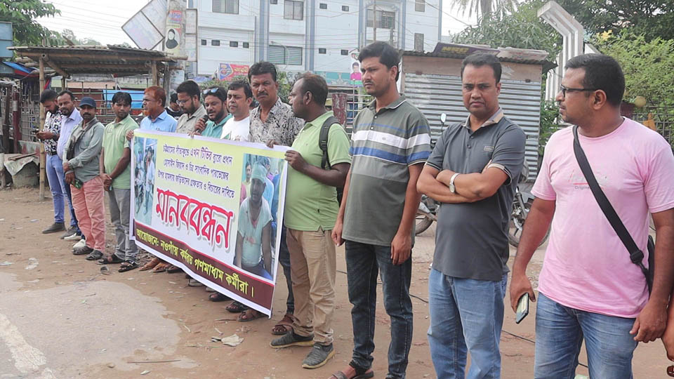 চট্টগ্রামে সাংবাদিকের ওপর সন্ত্রাসী হামলার প্রতিবাদে নওগাঁয় মানববন্ধন