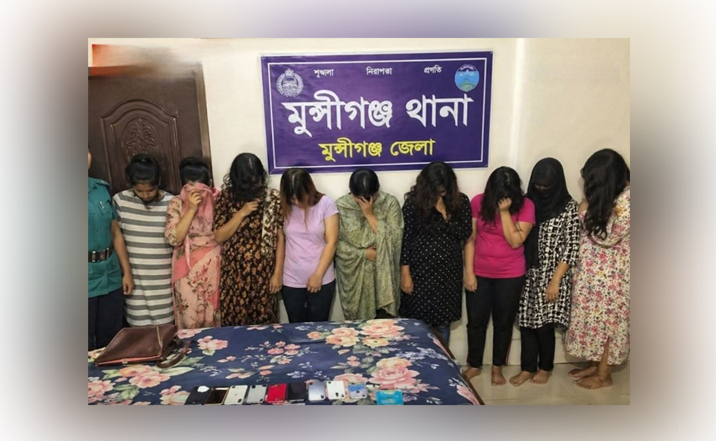 মুন্সিগঞ্জ সদর উপজেলার পৌর এলাকায় একটি ভাড়া বাসায় অভিযান চালিয়ে অসামাজিক কার্যকলাপে লিপ্ত থাকার অভিযোগে ৯নারী ও একজন খদ্দেরকে আটক