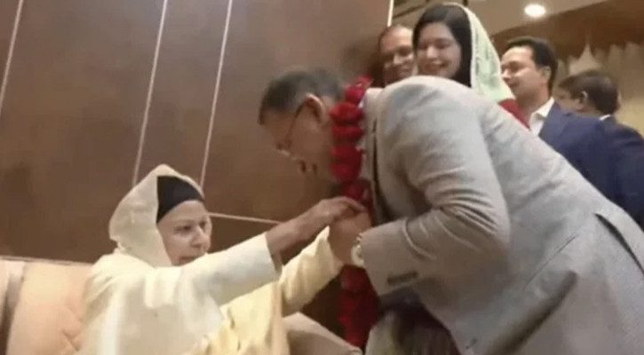 তারেক রহমানকে ফুলের মালা পরিয়ে স্বাগত জানালেন শাশুড়ি