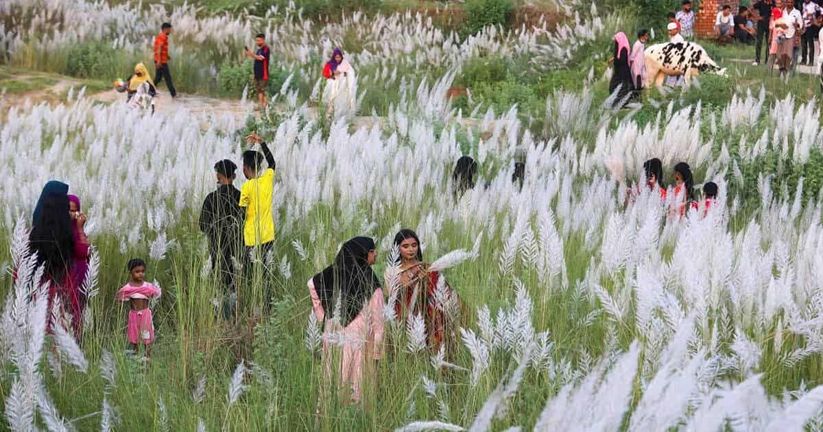 কাশফুলের শুভ্র সৌন্দর্য্য উপভোগে যমুনার পারে প্রকৃতিপ্রেমীদের ভীড়