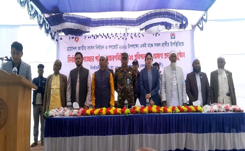 এক মঞ্চে সিরাজগঞ্জ- ৫ আসনের প্রার্থীদের নির্বাচনী ইশতেহার পাঠ