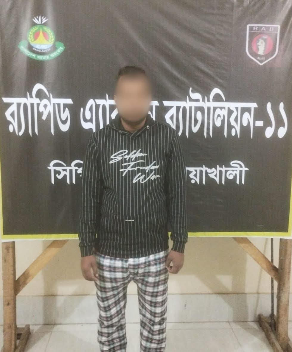 র্যাব-১১, সিপিসি-৩, নোয়াখালীর অভিযানে বেগমগঞ্জে পিটিয়ে হত্যা করে বস্তাবন্দি লাশ ফেলে দেওয়ার চাঞ্চল্যকর জাকির হোসেন হত্যা মামলার এজাহারভুক্ত ৬ নম্বর