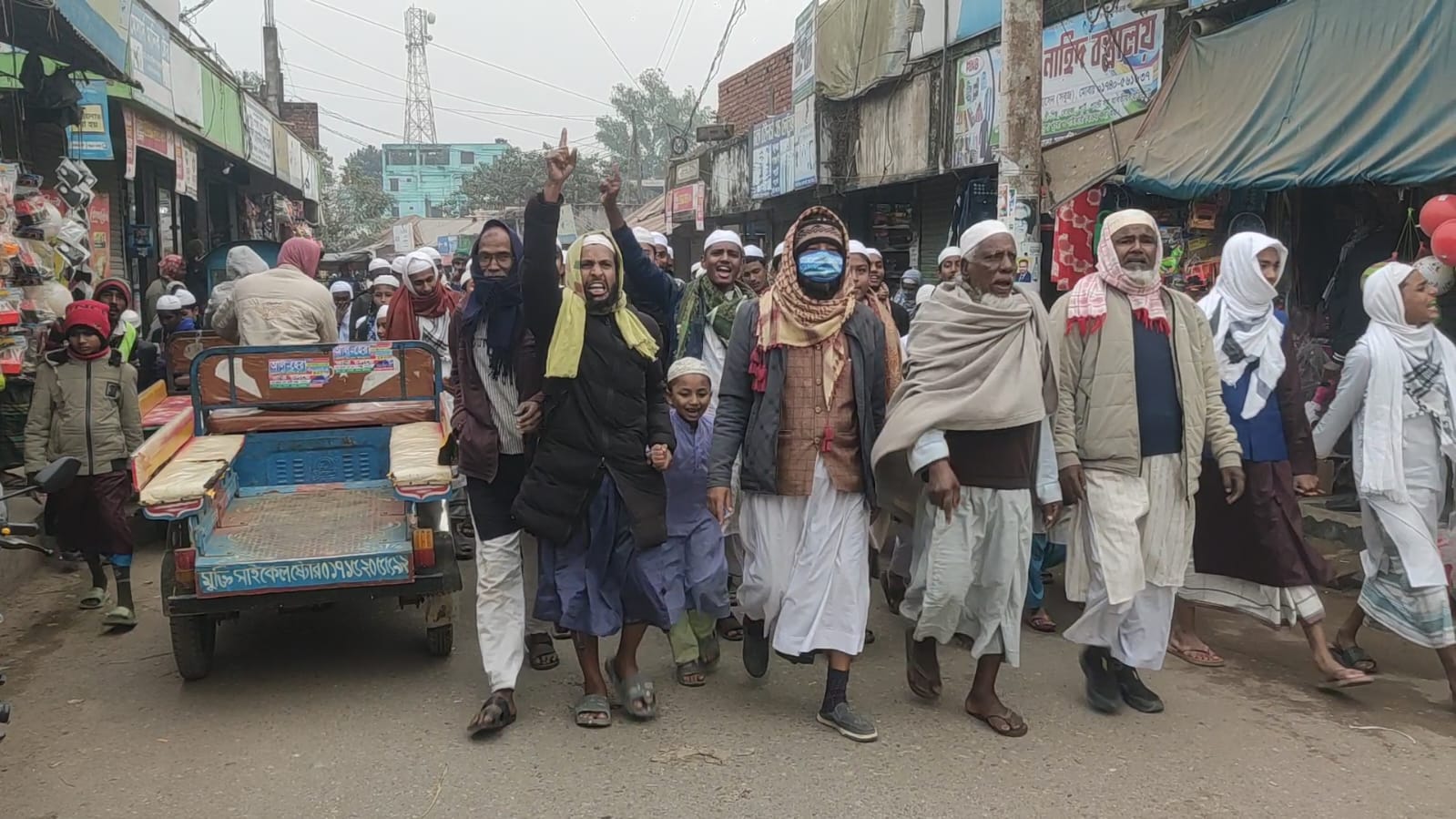 সিরাজগঞ্জের রায়গঞ্জ উপজেলার সোনাখাড়া ইউনিয়নের বন্দিহার গ্রামে বাউলগানের নামে অশ্লীল নাচ-গানসহ অনৈসলামিক ও অসামাজিক কর্মকাণ্ড বন্ধের দাবিতে বিক্ষোভ মিছিল করেছে