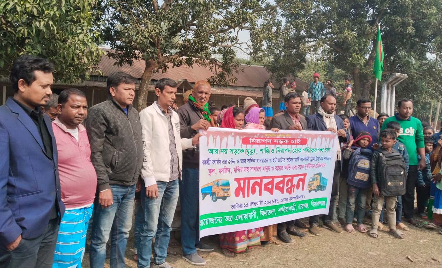 “নিরাপদ সড়ক চাই—আর নয় সড়কে মৃত্যু” স্লোগানে সিরাজগঞ্জের রায়গঞ্জে মানববন্ধন কর্মসূচি পালন করা হয়েছে। বৃহস্পতিবার (১৫ জানুয়ারি) দুপুর সাড়ে