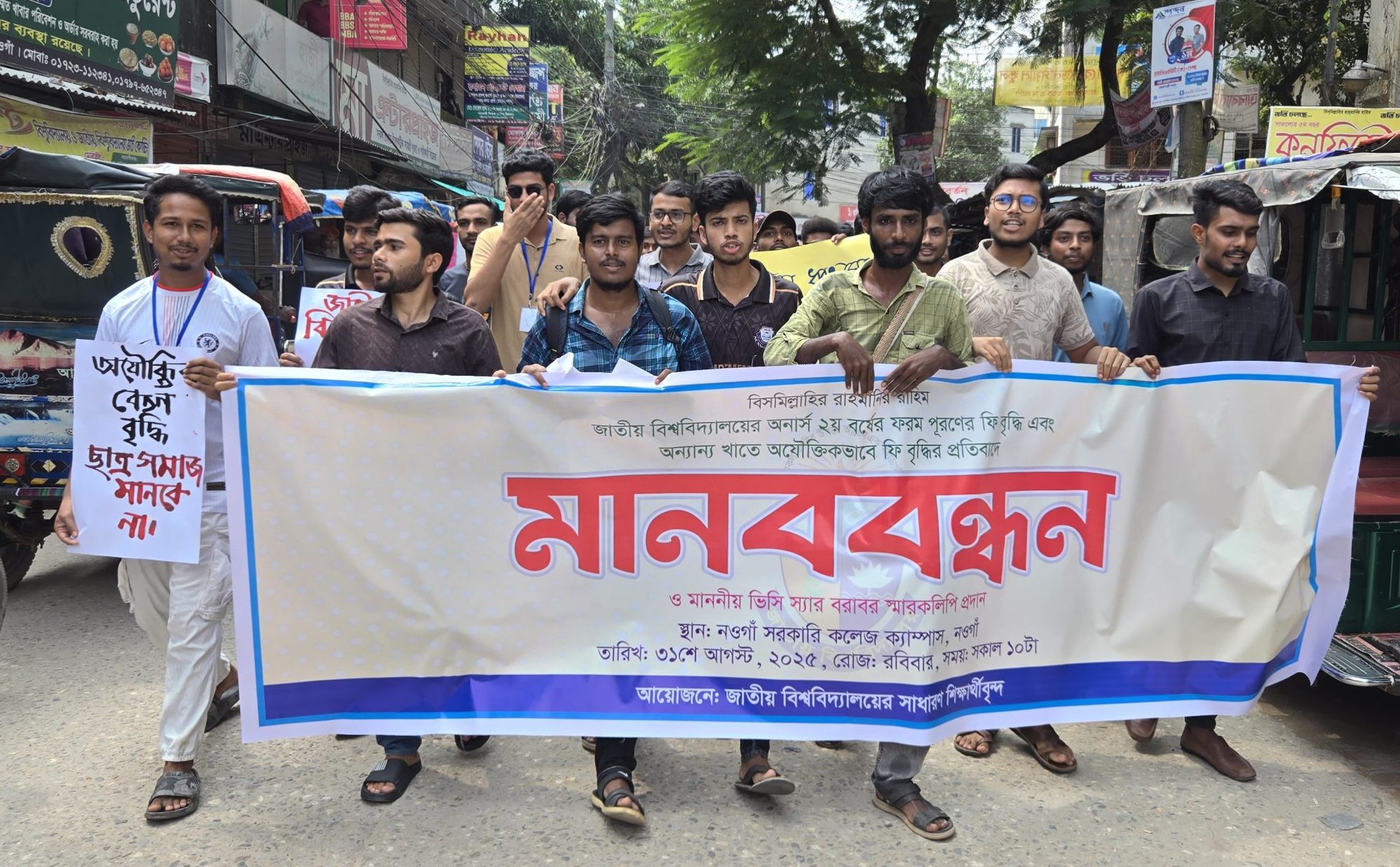 ফি বৃদ্ধির প্রতিবাদে নওগাঁয় শিক্ষার্থীদের বিক্ষোভ