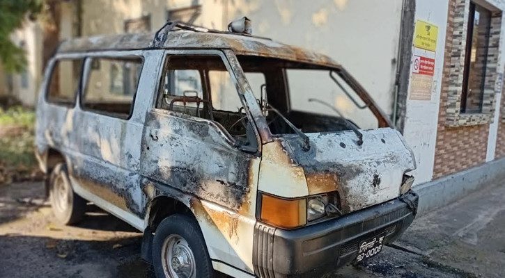 সিলেটে দুর্বৃত্তদের তাণ্ডব: অ্যাম্বুলেন্স ও বাসে অগ্নিসংযোগ