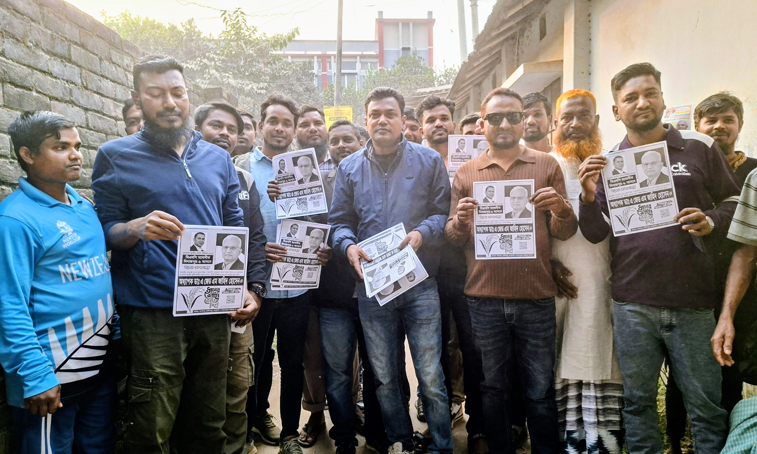 হিলিতে স্বেচ্ছাসেবক দলের উদ্যোগে ডাঃ জাহিদ হোসেনের পক্ষে লিফলেট বিতরণ