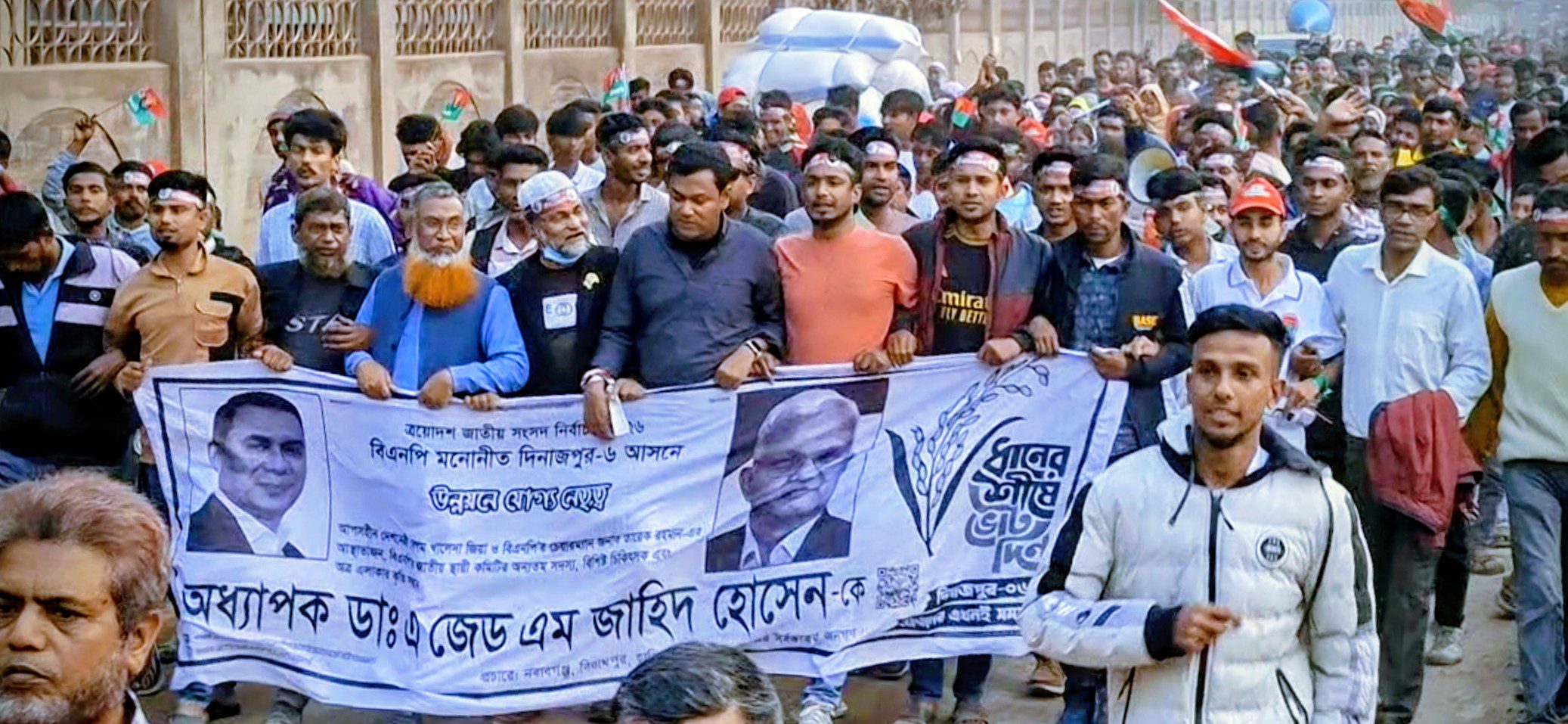 হিলিতে ধানের শীষের পক্ষে বিশাল মিছিল